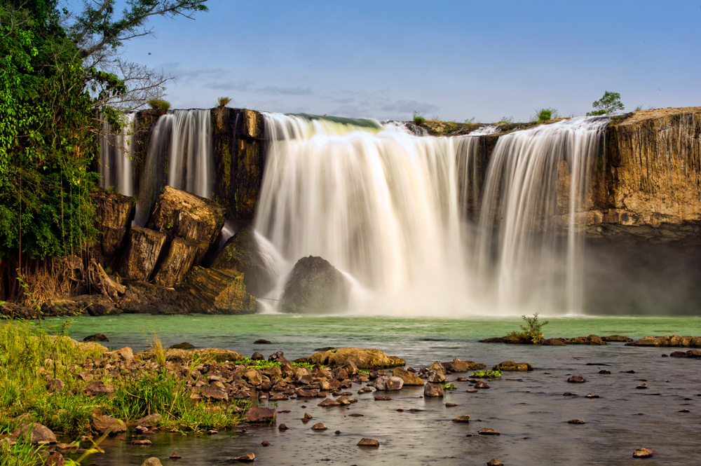 Fed by the Srepock River, a major tributary of the Mekong River that flows from the Central Highlands into northeastern Cambodia, Dray Nur and Dray Sap waterfalls are worth the trip out from Buon Ma Thuot. As the bird flies, Dray Nur and Dray Sap waterfalls are almost side by side but because of a broken bridge unlikely to be repaired any time soon, you have to travel 23 kilometres nearly full circle to see both.