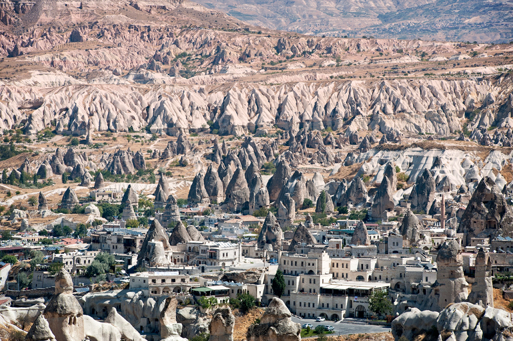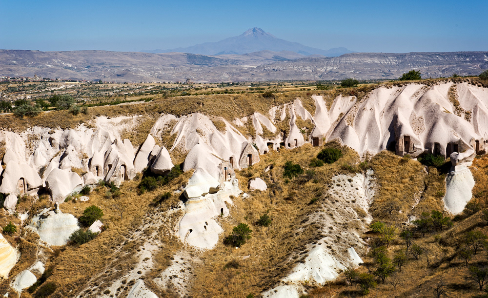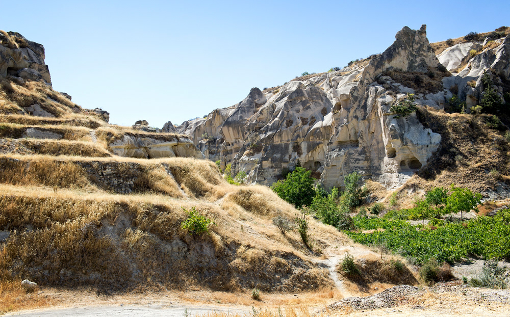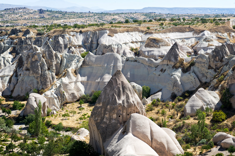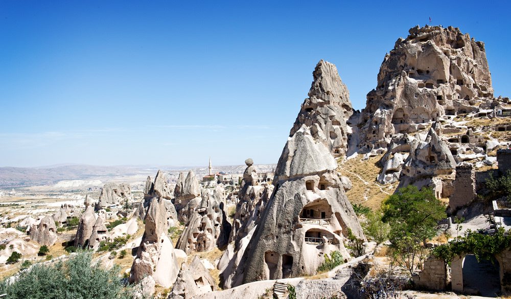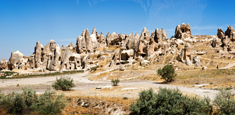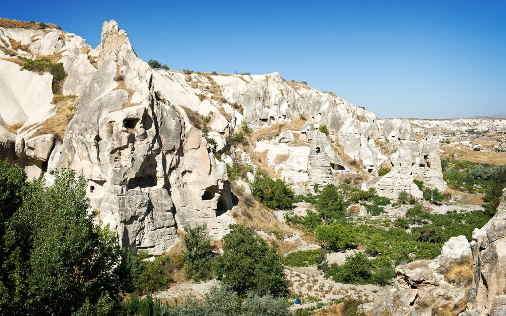 Cappadocia, a semi-arid region in central Turkey, is known for its distinctive “fairy chimneys,” tall, cone-shaped rock formations clustered in Monks Valley, Göreme and elsewhere. Other notables sites include Bronze Age homes carved into valley walls by troglodytes (cave dwellers) and later used as refuges by early Christians. The 100m-deep Ihlara Canyon houses numerous rock-face churches.